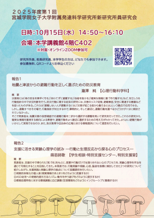 2025年度第1回宮城学院女子大学附属発達科学研究所新研究所員研究会を開催いたします。