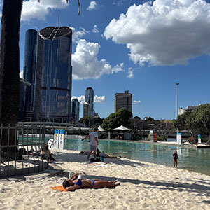 こちらでの生活も早や1か月が経ちますが、都会と自然のバランスがよく、足を伸ばせば有名なリゾート地のゴールドコーストにも電車で行くことができる過ごしやすい街だと感じています。驚いたことに、図書館や美術館などの公共施設を無料で利用できるだけでなく、電車やバス、フェリーを含む全ての公共交通機関を1回50セント(約50円)で利用することもできます。さらに、一部の映画館では9ドル(約900円)で映画を見ることができるなど留学生にとって優しい街だと思います。