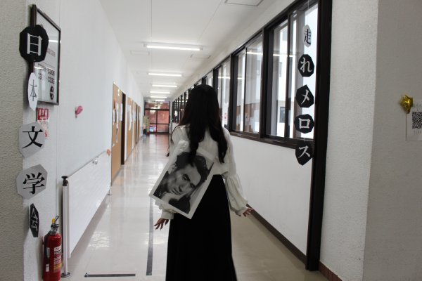 メロスが走り出すまでのストーリーが日本文学科教員によって語られるという、卒業生にとってはまさかの恩師(声)との再会の場を、日本文学科の学生にとっては「え?!志村先生?!」というサプライズの場を演出。