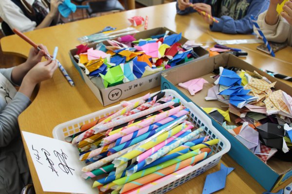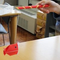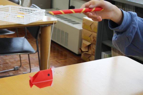 クイズに関係なく、出口ではメロスが格闘した川におそらく普段は泳いでいるであろう魚を使った釣り竿をお配りしました(すべて折り紙で制作)。この釣り竿がよく出来ていて、お客様には可愛いと喜んでいただけました。