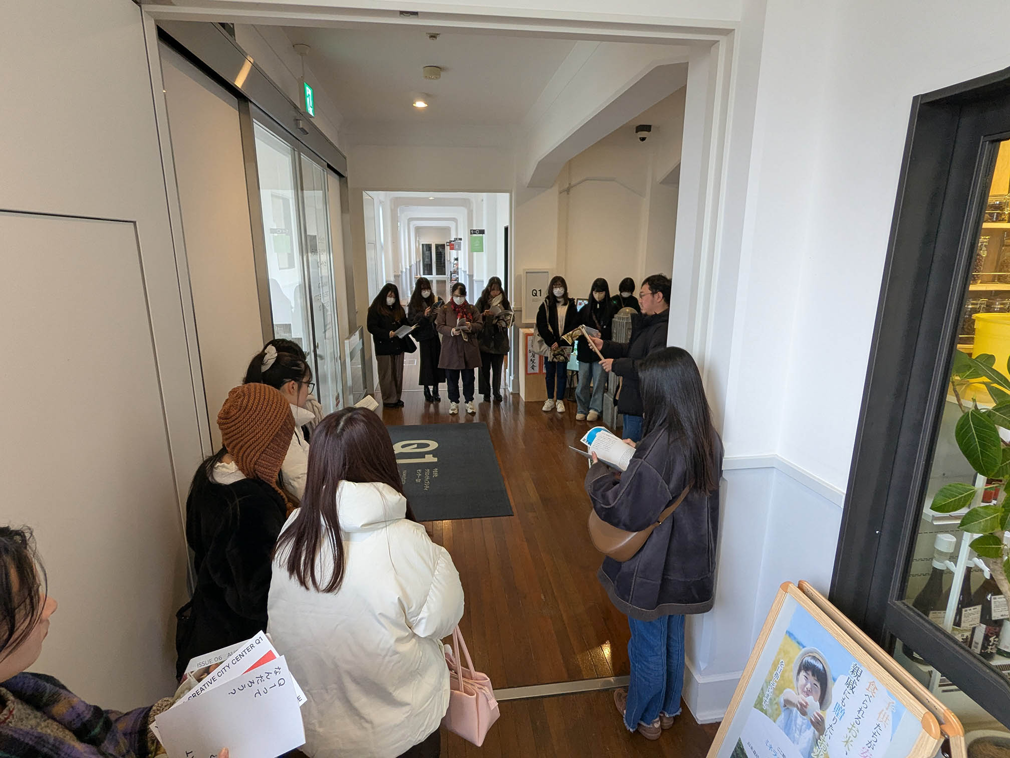 運営会社のスタッフのかたにご案内いただいて、概要を理解してから、各自施設を見学しました。水曜日は多くの店が定休日で少し残念でしたが、山形市の先駆的な取り組みは地域経済や地域産業に興味のある学生にとって刺激になったようです。