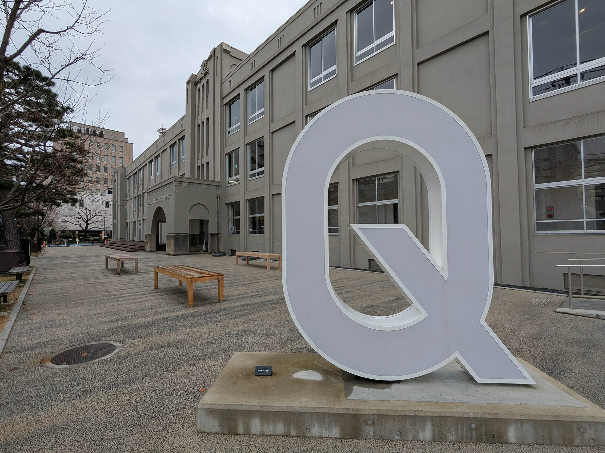 施設は山形市が整備し、民間の株式会社Q1が運営しています。Q1の由来は旧一小から来ていて、かつての小学校校舎の呼び名からつけられたそうです。ちなみに、第一小学校はいまでも隣接する新しい校舎で続いているので、廃校利用というカテゴリーではありません。